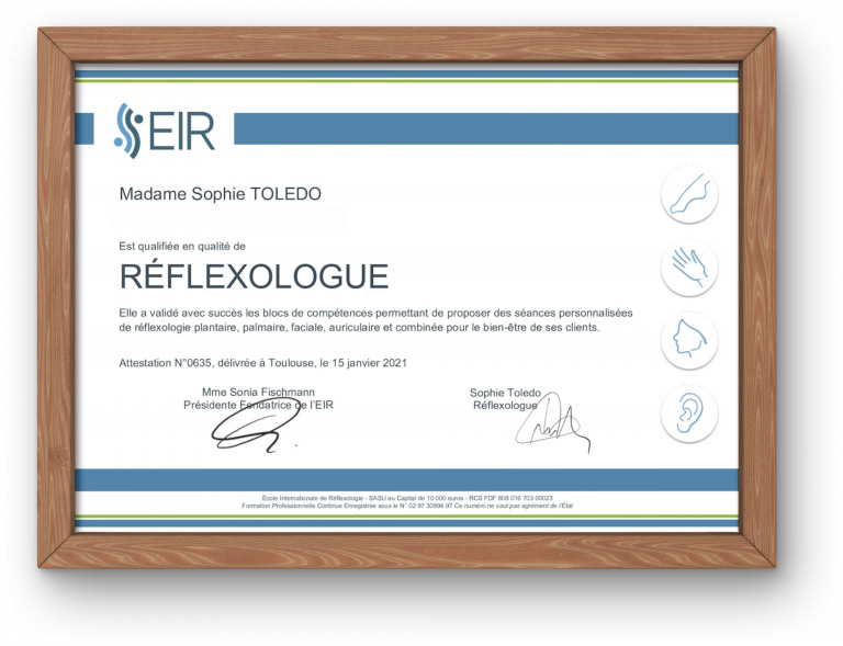 C’est en 2017 que ma curiosité m’a menée à franchir un nouveau cap : celui de la réflexologie. Longtemps intriguée par cette méthode douce mais puissante, j’ai entrepris une formation à l’École Internationale de Réflexothérapie, où j’ai découvert un univers aussi fascinant qu’enrichissant.